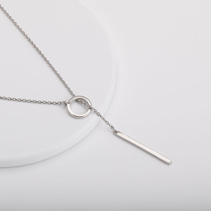 The Silver Elegance Over All Pendant has a silver bar and round charms dangling with a silver chain.