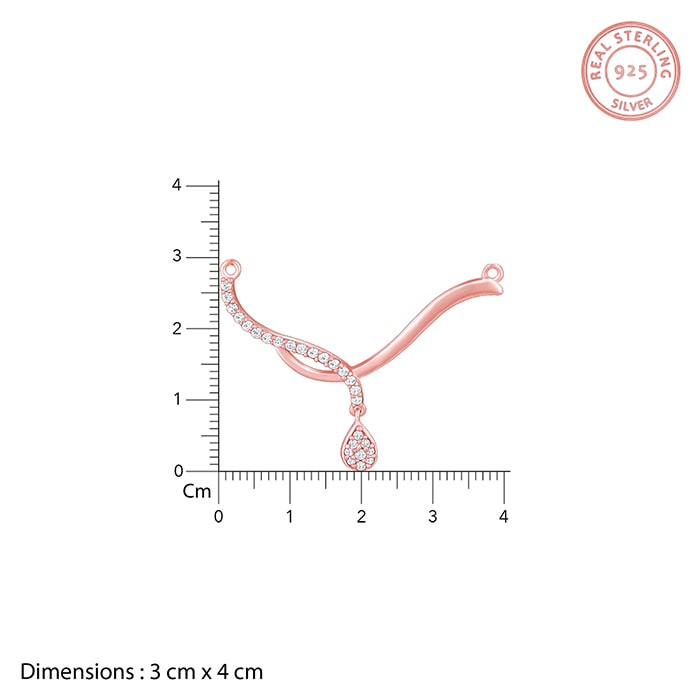 The gorgeous rose gold mangalsutra is stylishly forward while rooted in tradition. Black beaded chain end with a plain layer twirl of rose gold overlaps with another layer studded with zircons. It is connected with a drop motif that dangles from the centre.