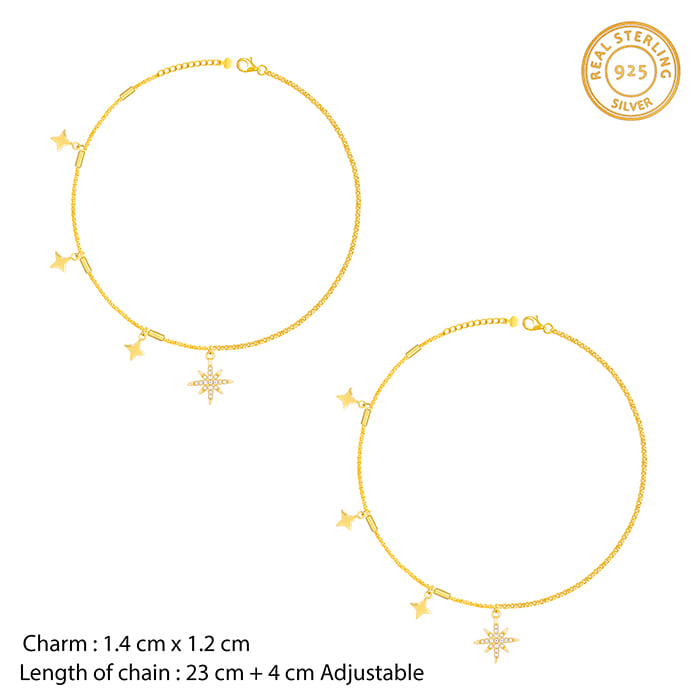 This golden anklet has star motifs, one studded with zircons and four others are plain.