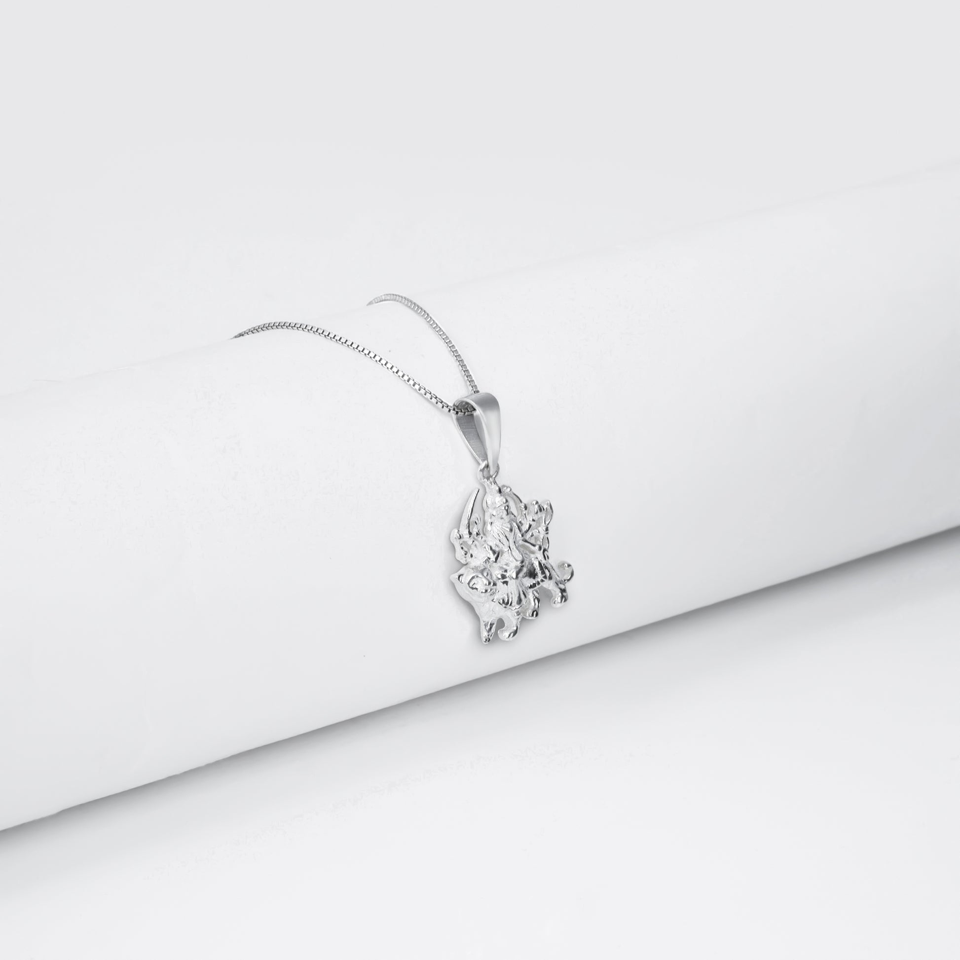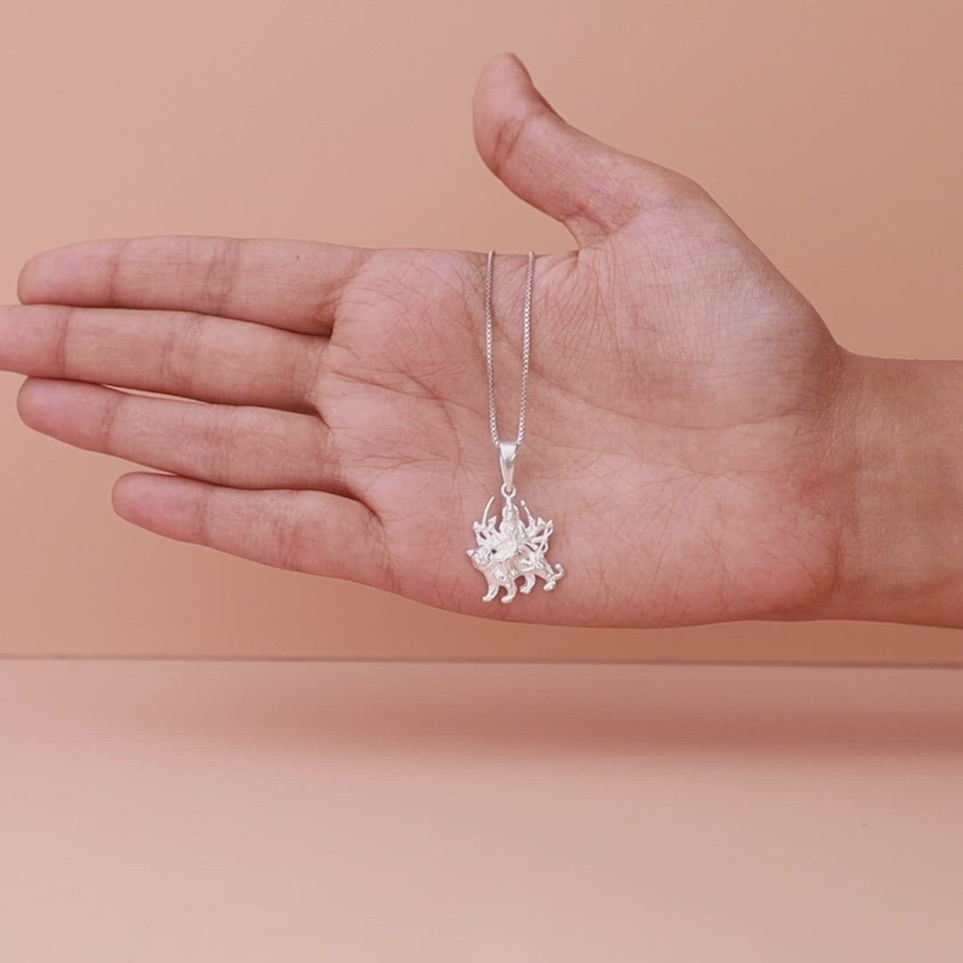 Silver Durga Pendant With Box Chain