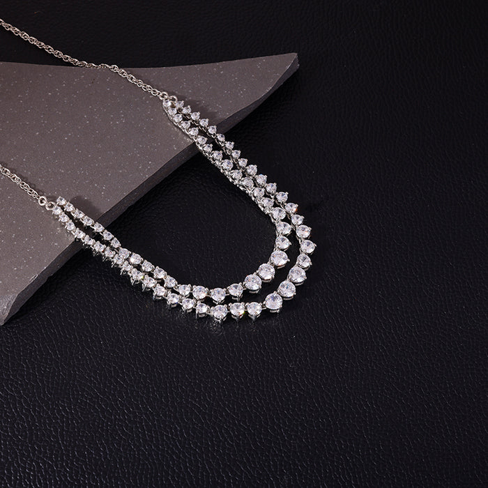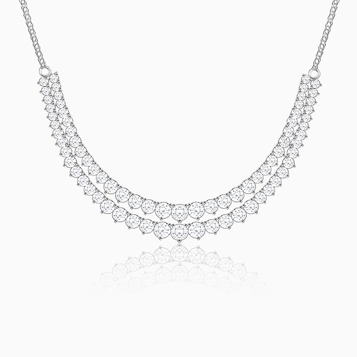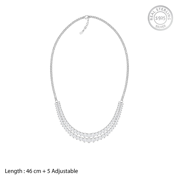 The Silver Sparkling Layered Necklace has small zircons studded on the chain in layers.