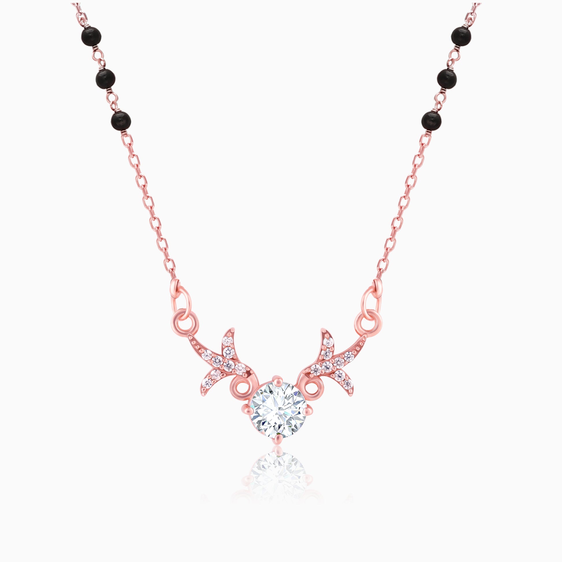 The rose gold mangalsutra has a beautiful design embellished with zircons.