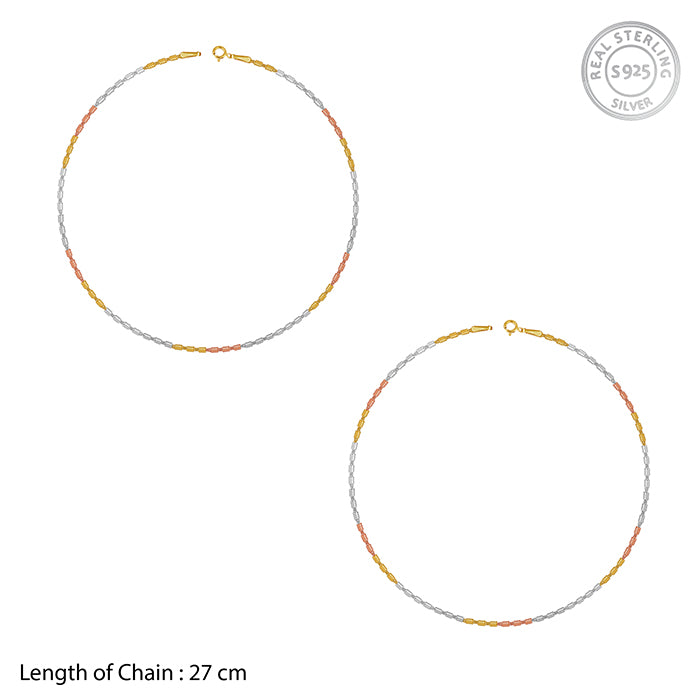 This anklet blends three distinct tones into one smooth, bonded chain that feels both polished and powerful. Easy to style and impossible to miss, it’s made for ankles that like to do the talking.