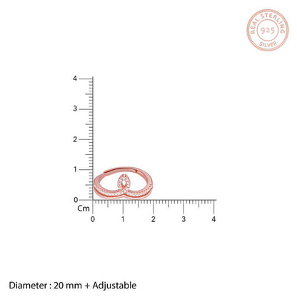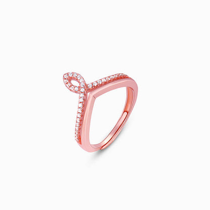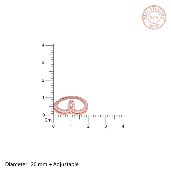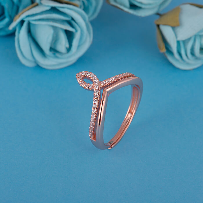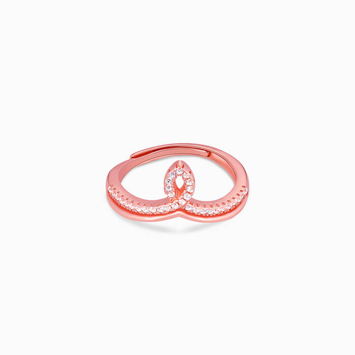 The Rose Gold Ring has a loop at the centre pointed to the top with zircons studded on it.