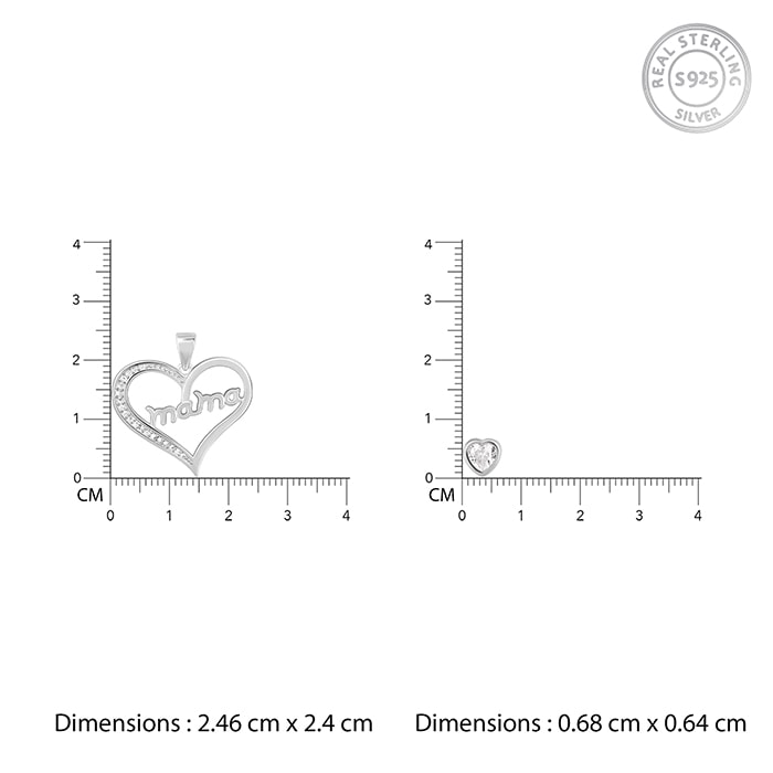 The silver necklace has a layered design with a small heart motif on the first layer and a heart with MAMA written on it on the second layer.