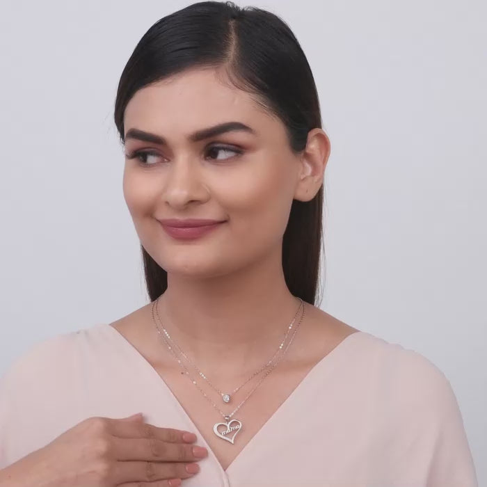 The Anushka Sharma Silver Mama in my Heart Layered Necklace is inspired by the love we have in our hearts for our mothers.