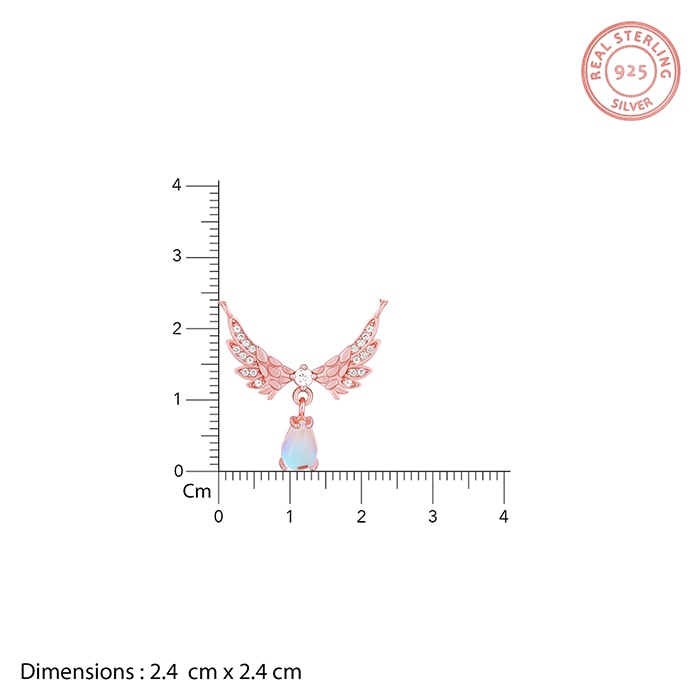 The Rose Gold Necklace has a charm shaped as the zircon studded wings with a beautiful zircon dangling from the centre.