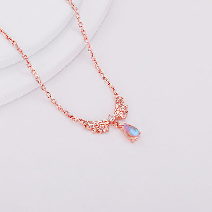 Rose Gold Divine Wings Moonstone Drop Necklace