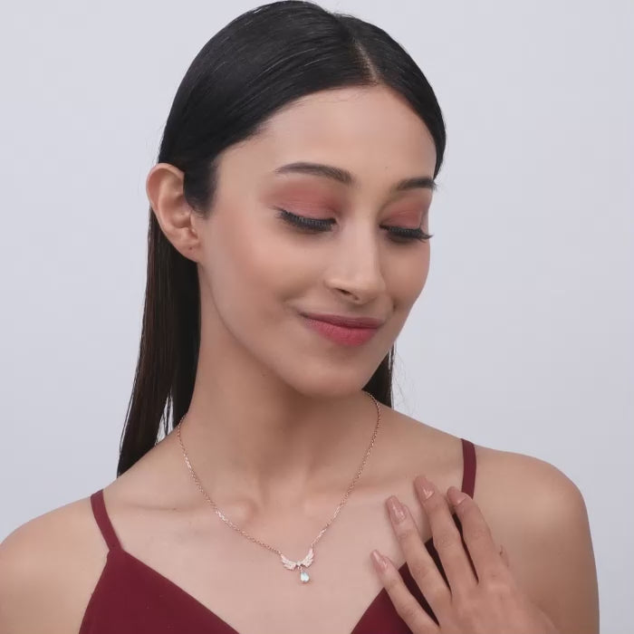 Rose Gold Divine Wings Moonstone Drop NecklaceMetal:Colour:Rose GoldBuy NowCustomizeRegular price ₹4,799Sale price ₹4,799 Regular priceUnit price / per₹10,599Rose Gold Divine Wings Moonstone Drop Necklace