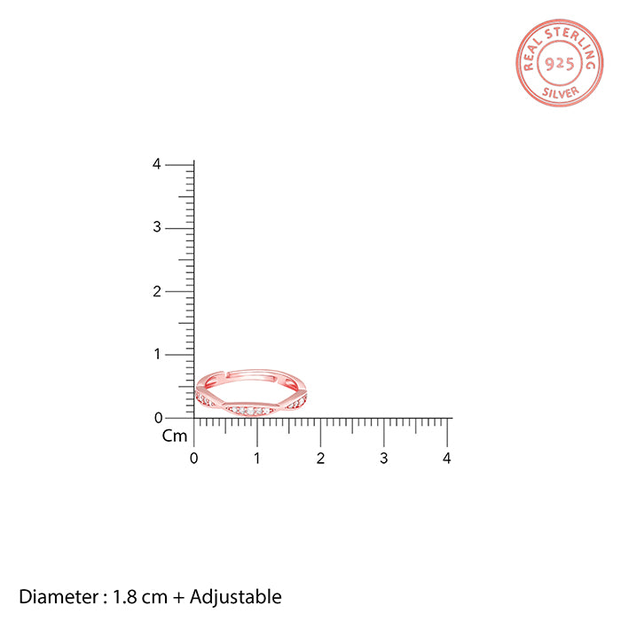 The rose gold ring has a zig-zag pattern with zircons studded inside it.