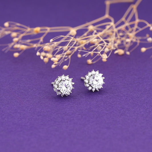 Say hello to the shiniest pair of flower studs the world has ever seen! Featuring a dazzling radiant-cut centrepiece surrounded by a bevy of little gems, these shining zircon earrings truly shine like the stars